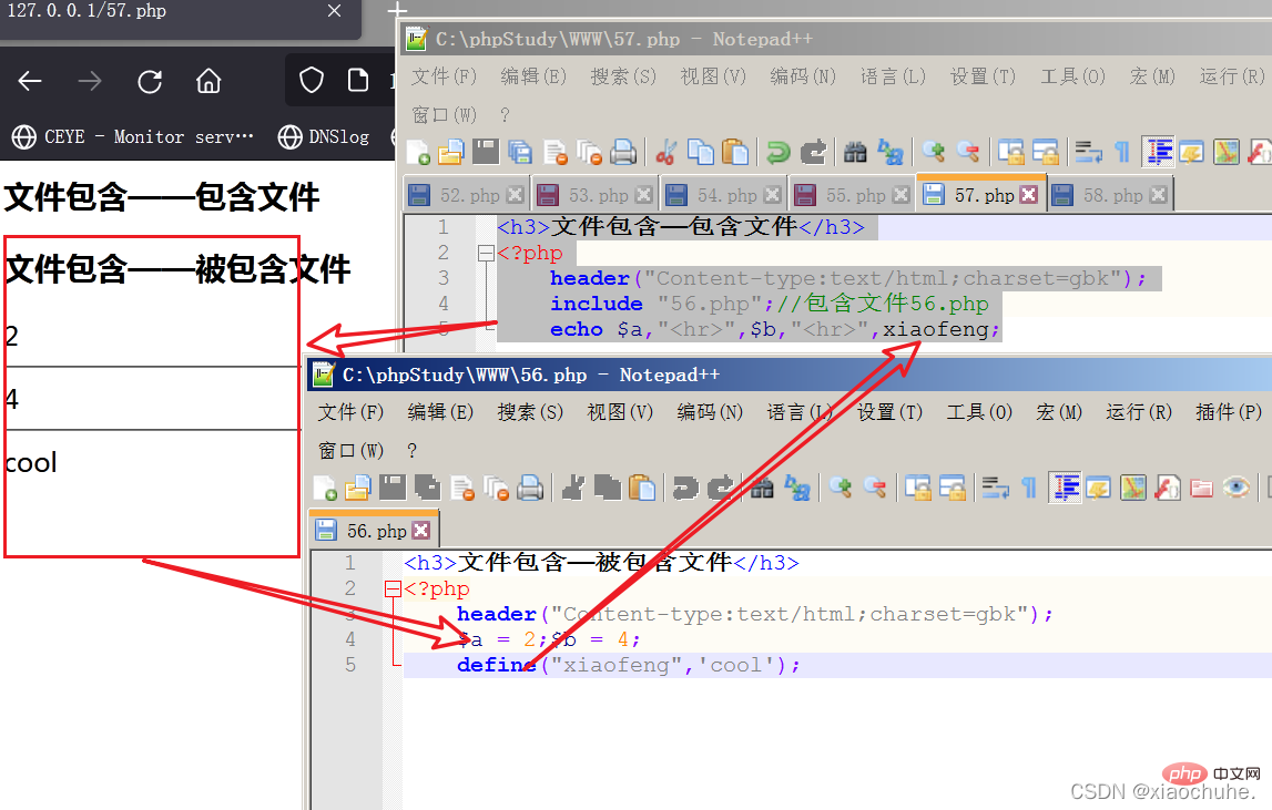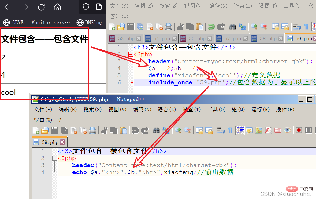 echo $a,"<hr>",$b,"<hr>",xiaofeng;//输出数据