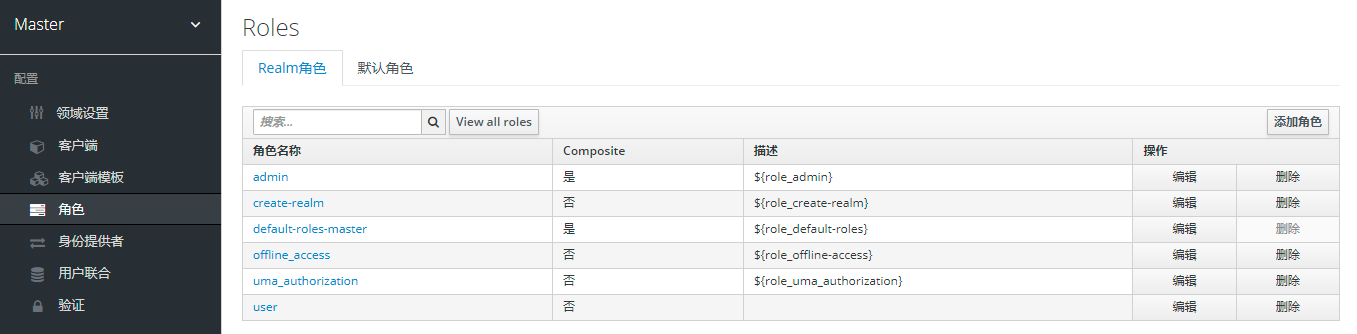 域 级角色是定义角色的全局命名空间,点击左侧菜单“角色”,可以看到已存在的角色;可以添加、编辑、删除角色。