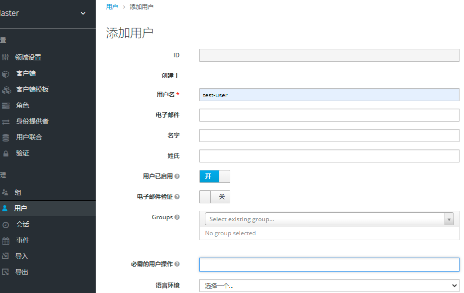 点击上一小节打开的用户列表页中的“添加用户”,开始创建用户。