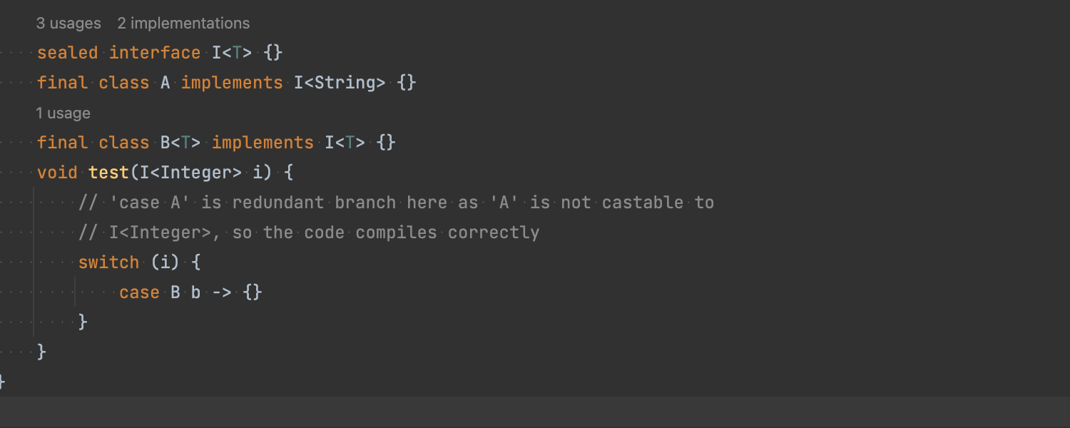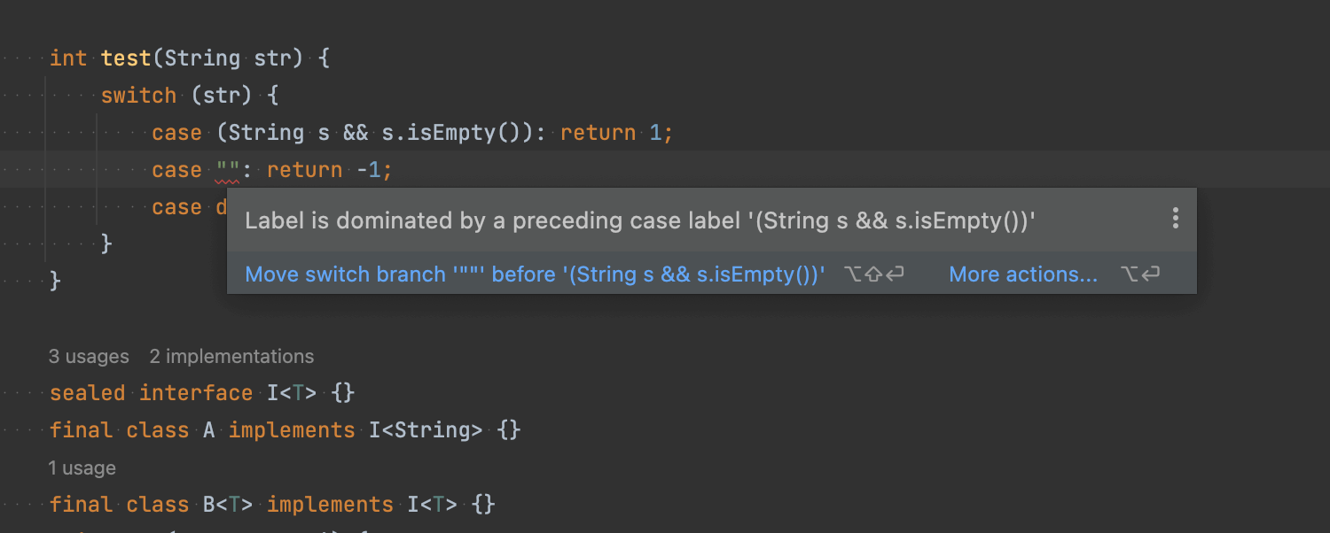 在JDK 17中引入的Switch表达式模式匹配规范这次也已经更新,在该版本的IntelliJ IDEA已支持这两种基本更新。