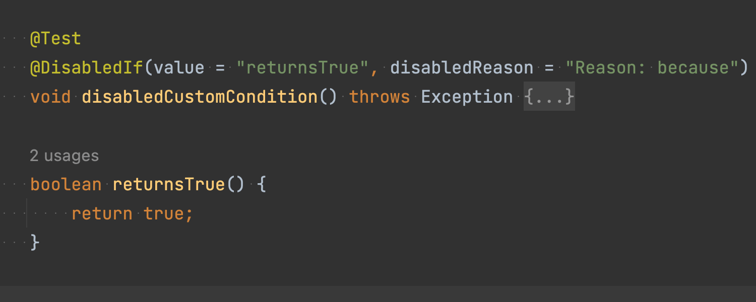 添加了对JUnit 5.7中引入的新功能的支持,包括对@EnabledIf/DisabledIf、@NullSource/emptySource和@TempDir注释的支持。