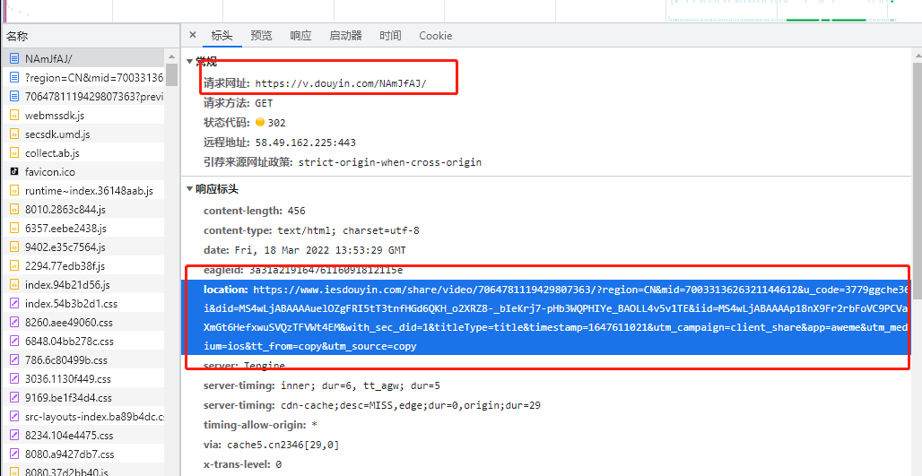 按F12查看网络请求,找到刚刚复制的那个请求地址,在响应头里有一个location链接,访问location的链接