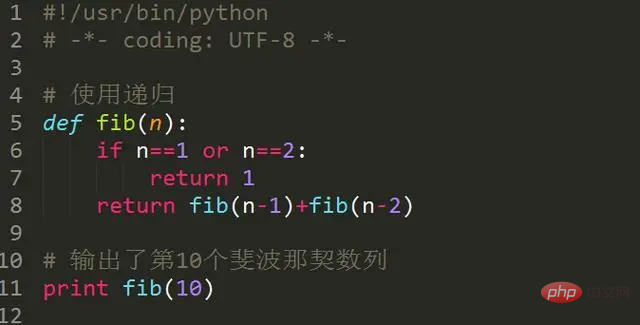 以上实例输出了第10个斐波那契数列,结果为: 55
