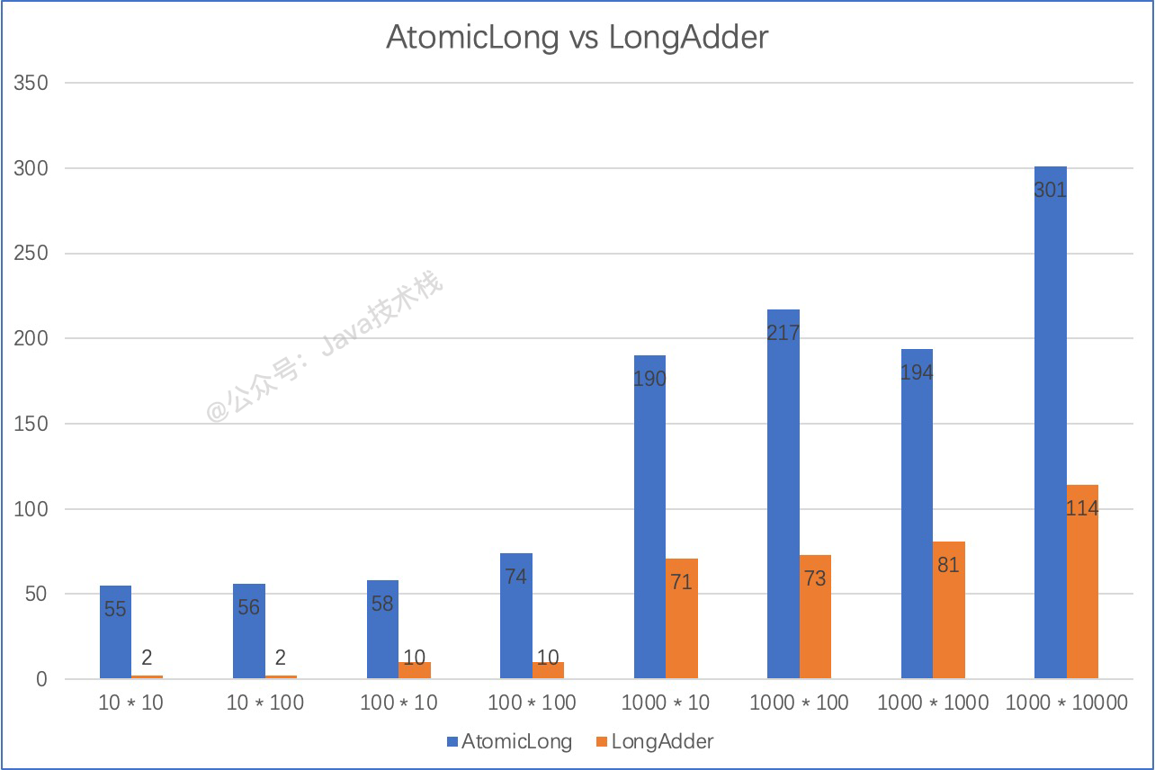 | 线程数 * 循环次数 | AtomicLong | LongAdder |