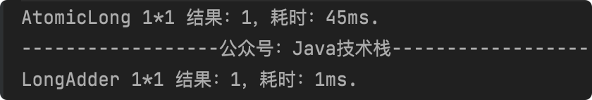 System.out.printf("LongAdder %s*%s 结果:%s,耗时:%sms.