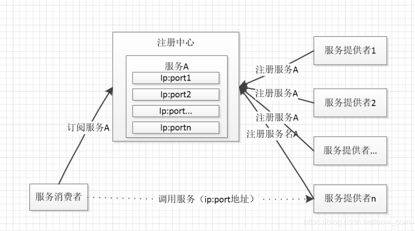 - 注册中心:根据服务名称,存储对应的ip:port以及其他信息。