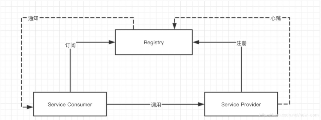 使用注册中心能够实现服务治理,服务动态扩容,以及服务调用的负载均衡,完整调用链路示例如下: