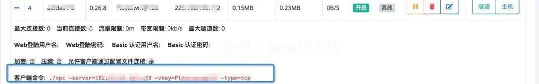 ./npc -server=你的IP:8024 -vkey=唯一验证密码 -type=tcp
