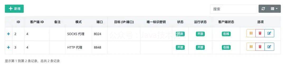 在客户端界面可以通过新增的方式添加客户端连接,每一个连接的vkey都是唯一区分的。