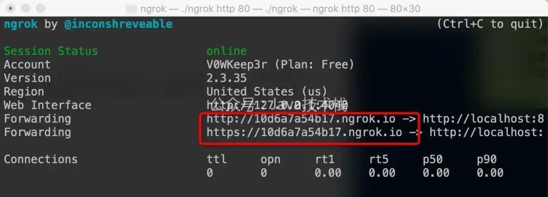 ./ngrok authtoken 1hAotxhmORtzCYvUc3BsxDBPh1H_******************./ngrok http 80即可将机器的80端口http服务暴露到公网,并且会提供一个公网域名。