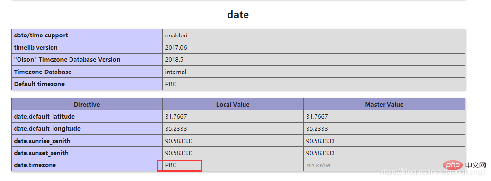 <IfModule mod_php7.c> php_value date.timezone PRC </IfModule>然后看一下PHP,这就设置成功了