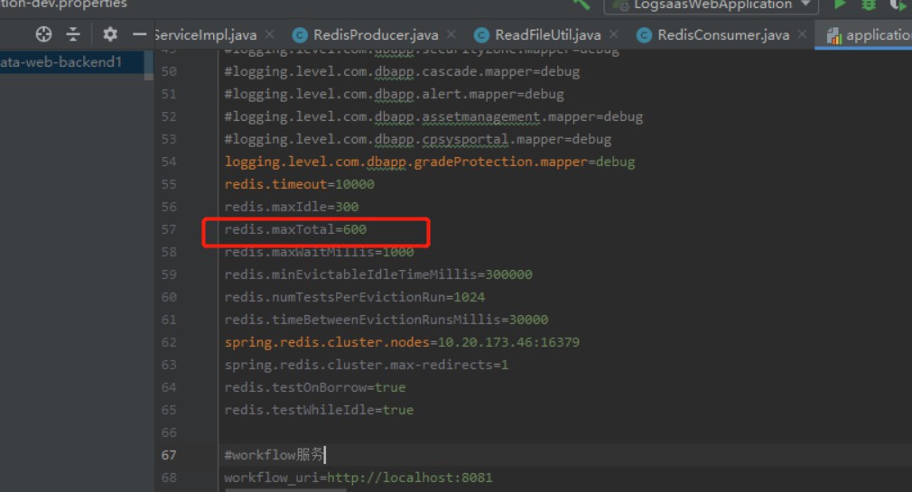 至此我们大概能猜出大概率是我们内部redis连接配置有问题导致的 这个时候我们回到代码本身去查看redis相关配置信息