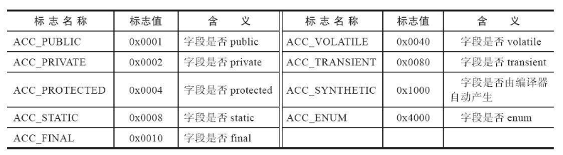 字段表不会包含继承而来的字段,但可能包含Java代码中没有的字段(如内部类中包含外部类的引用)。