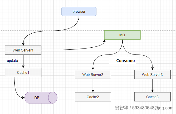 如上图,但是有个问题,Cache1、Cache1、Cache3一致性难以保障,如果想保持缓存的一致性时,该怎么办呢?