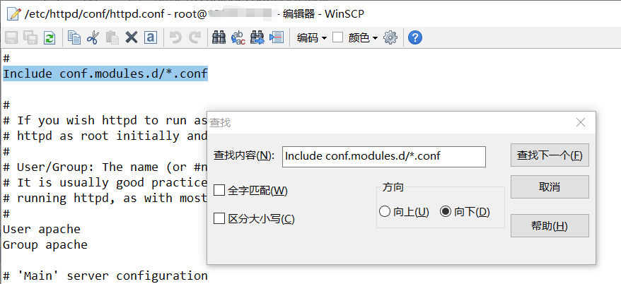 1、修改 /etc/httpd/conf 目录下的 httpd.conf 文件