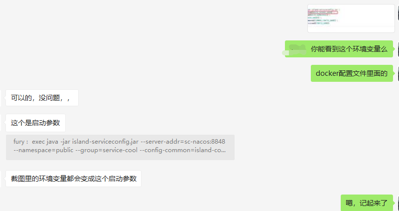 于是我又去问运维同事容器的启动命令。(因为docker中的环境变量,已经在启动命令中做了映射了,所有我们只用看运维同事的启动命令即可)