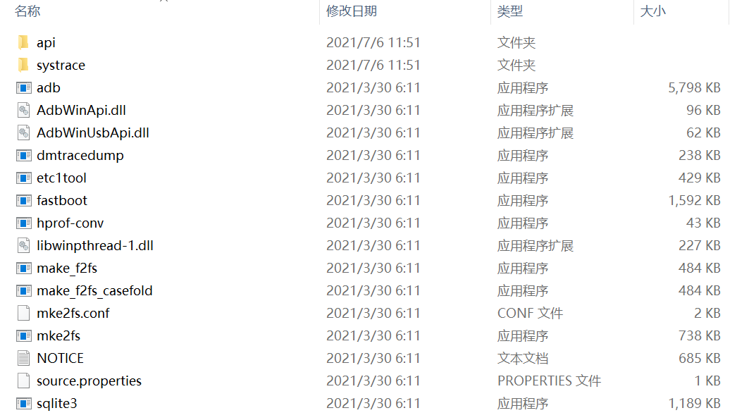 以 Windows 系统为例,首先需要下载一个 SDK 工具:https://developer.android.com/studio/releases/platform-tools,下载完成后解压得到如下内容: