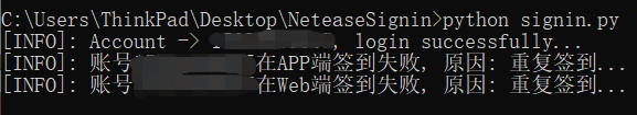 这个结果说明我们刚刚的猜想完全正确,只是因为我们已经签到过了,所以才显示重复签到。最后,为了节约每天在命令行输入账号密码的时间,我们可以在脚本的最前面添加几行代码: