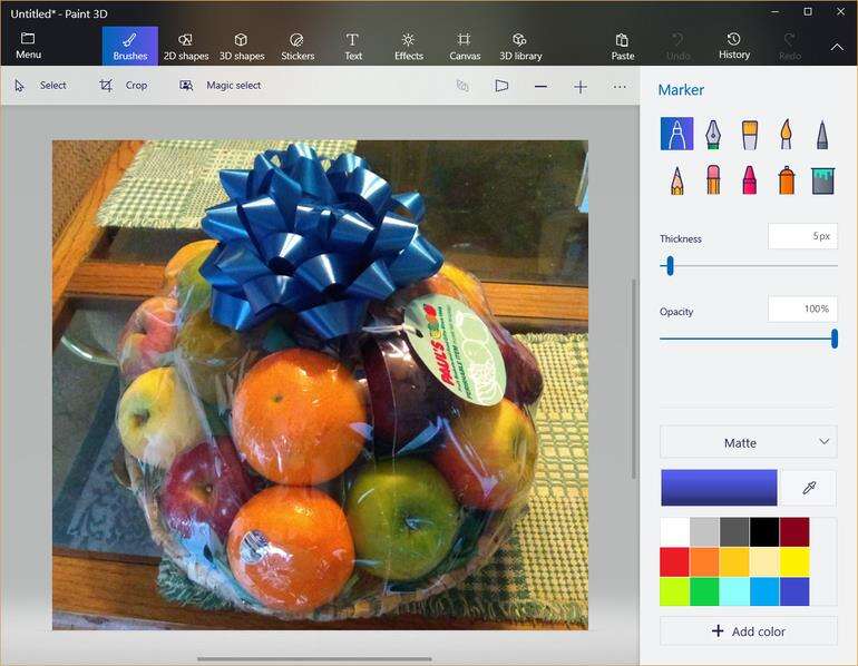 该命令将图像传递给Paint 3D(图B),您可以选择潜在的注释和标记。