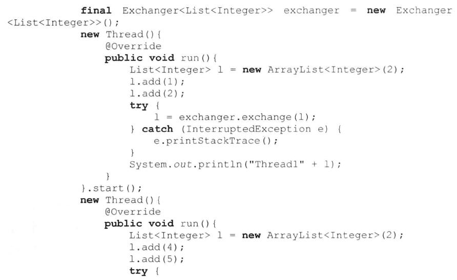 (1)https://docs.oracle.com/javase/7/docs/api/java/util/concurrent/Exchanger.html