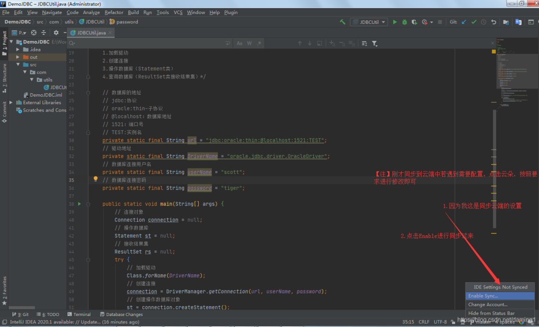 【注】若没有都选择,按如下操作步骤:File->Settings->Tools->Settings Repository或直接搜索Repository[在Tools中]->勾选’Auto Sync’:自动同步