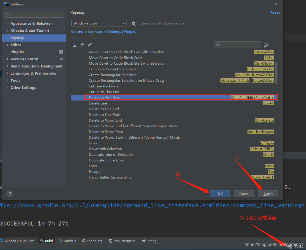 ①在Settings中修改Keymaps