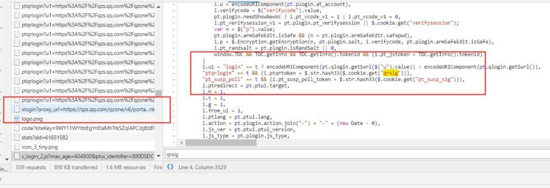 通过测试可以发现上面这些参数都是固定的。最后就剩下ptqrtoken这个参数啦,全局搜索一下,可以发现ptqrtoken这个参数在某个js文件里写了计算方式: