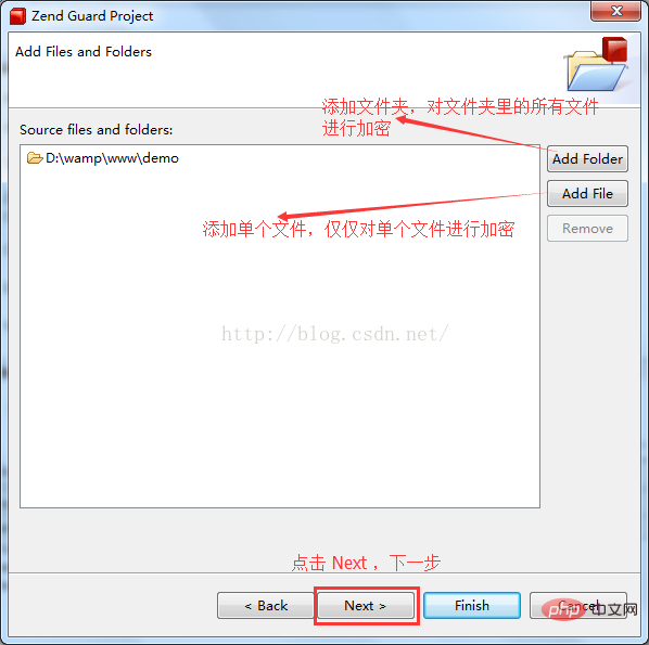 本步骤是选择要加密的文件,可以是单个文件[Add File]或整个文件夹[Add Folder],然后[Next]。