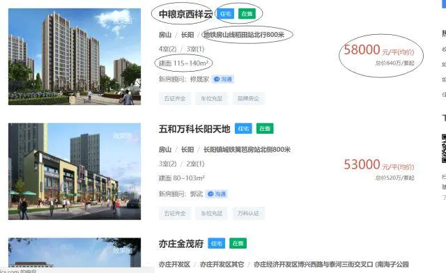 北京房价(万元/套起):