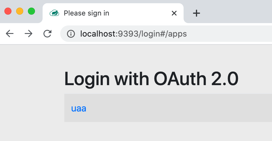 访问http://localhost:9393/dashboard/#/apps 会自动跳转到登陆界面,点击uaa: