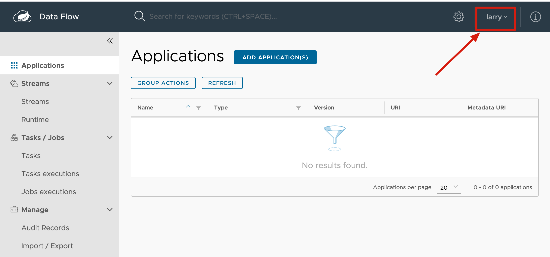 成功启动UAA并配置用户,再启动Data Flow Server后,便可以开始使用了,过程如下: