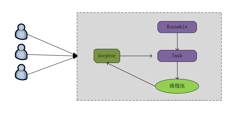 Runnable 接口)投递到后端的线程池中进行处理, JDK 的线程将维护一个消息队列和N个活跃线程, 对消息队列中的任务进行处理。