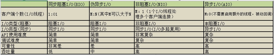 前面对不同的I/O模型进行了简单介绍,不同的I/O 模型由于线程模型、API 等差别很大,所以用法的差异也非常大。我们用一个表格来做一个统一说明: