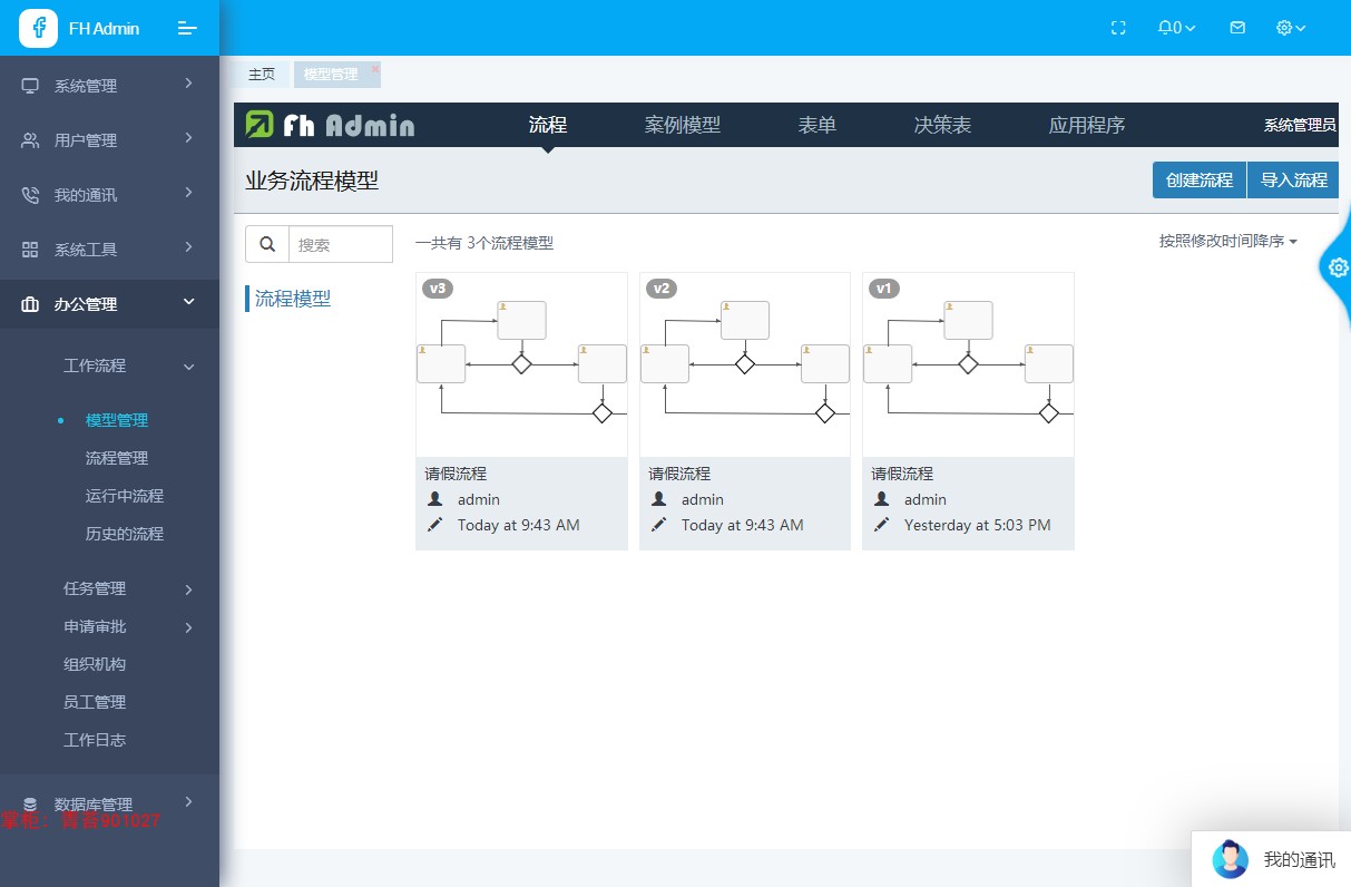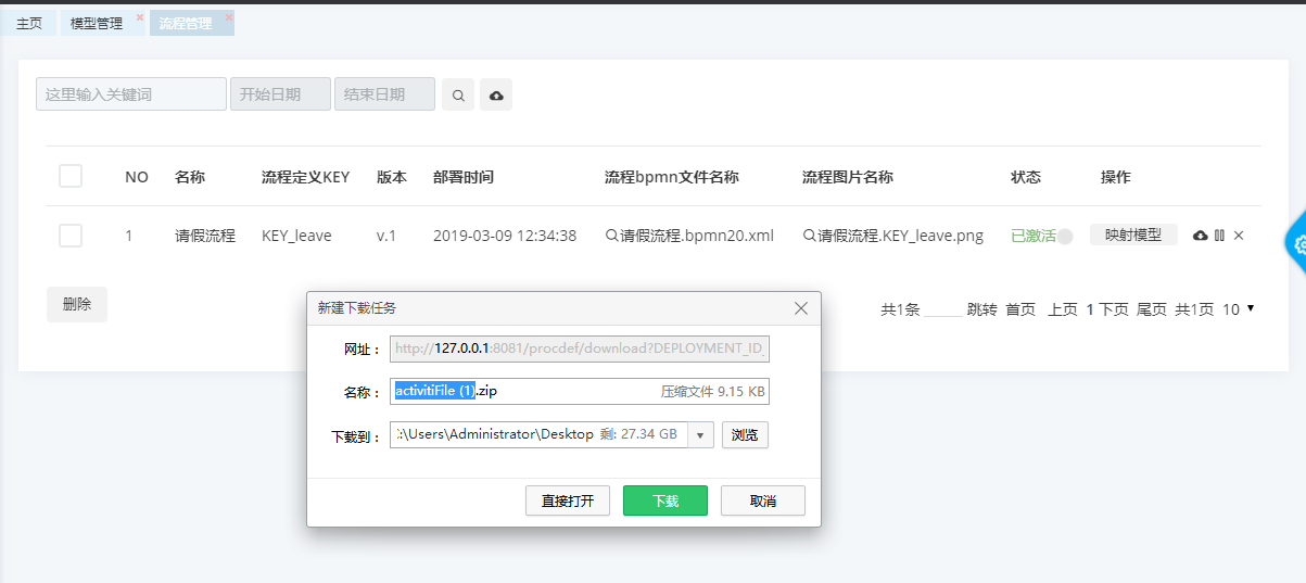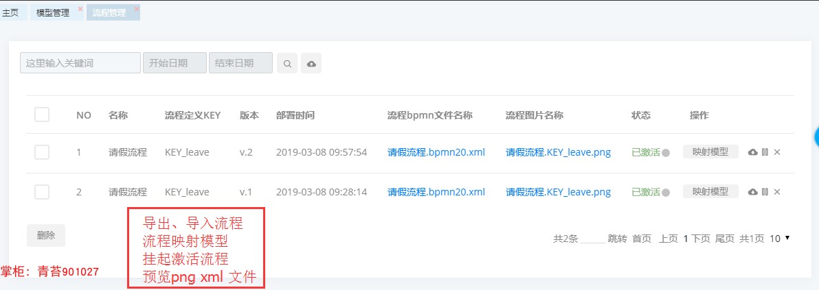 1.模型管理 :web在线流程设计器、导入导出xml、复制流程、部署流程