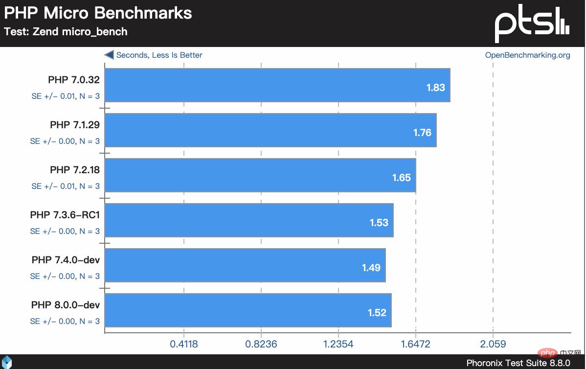 在此阶段,PHPBench的7.4性能与PHP 7.3稳定版相当,已经比PHP 7.0快了约30%…当然,与PHP 5.5的旧时代相比,收益甚至更大。