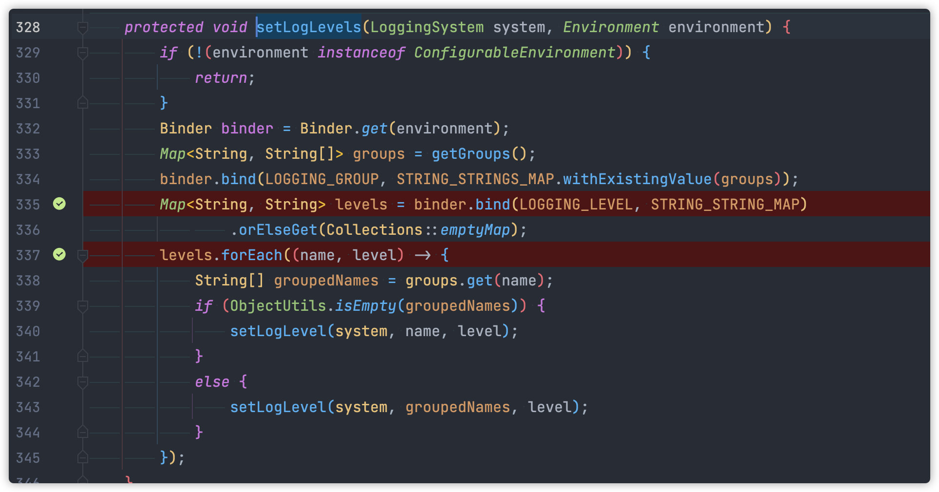 由于这个项目是一个 SpringBoot 的工程,里面有一个 LoggingApplicationListener将会监听 ApplicationEnvironmentPreparedEvent,代码如下: