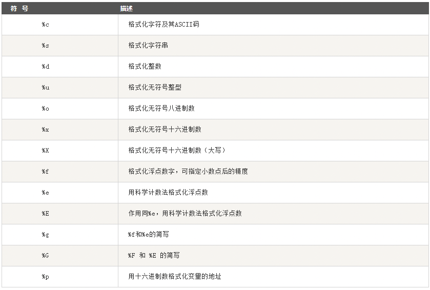 - 5.更多占位符的使用,请参考下表:(其实经常使用的就那么几种)