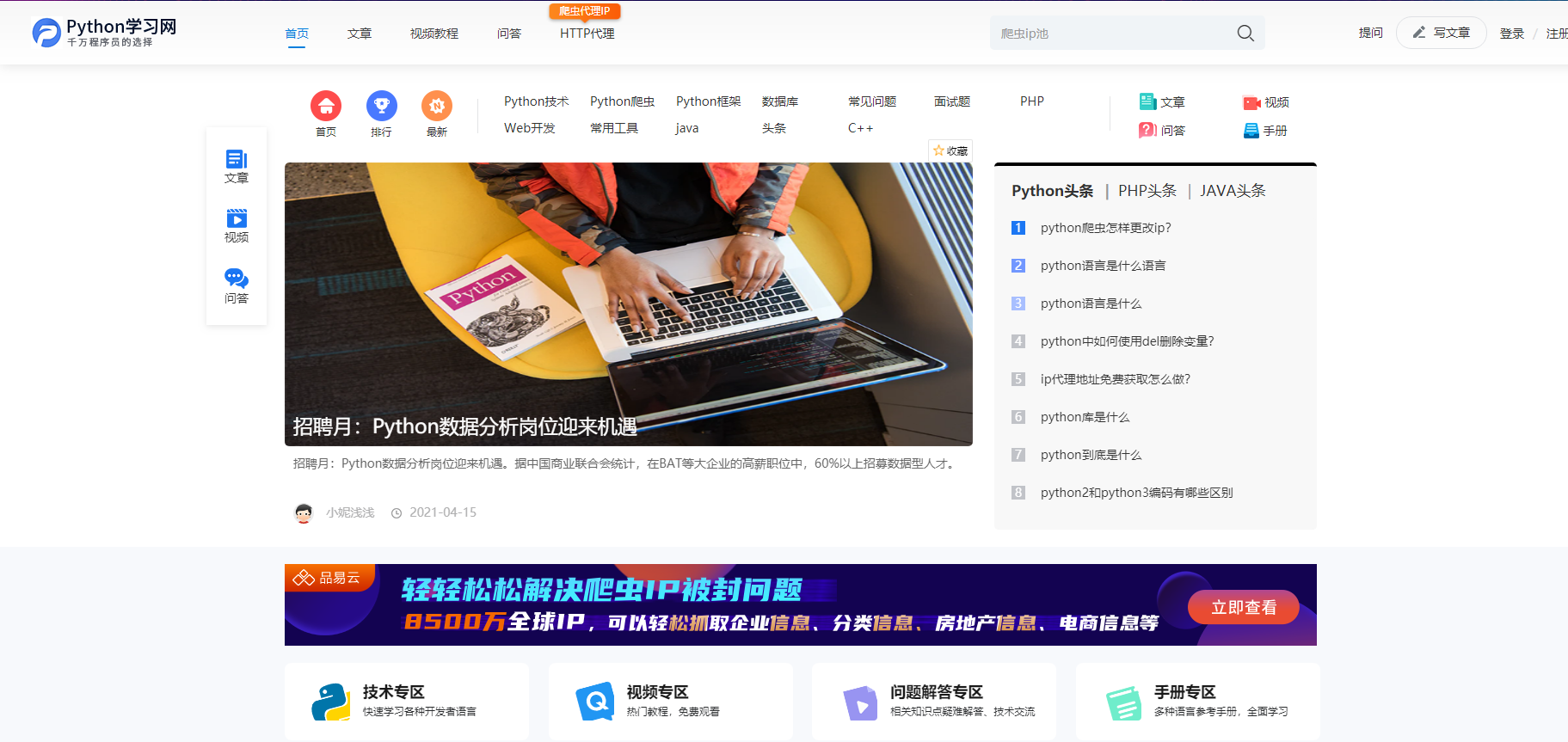 关于这个网站,大家应该很熟悉。网站所有文章视频内容均免费,还有大神集聚的社区问答吧,颇受程序小伙伴们的欢迎,帮助不少的程序员掌握核心的编程知识点。