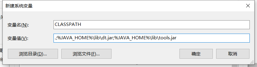 变量值:.;%JAVA_HOME%libdt.jar;%JAVA_HOME%lib ools.jar