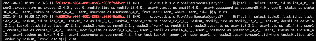 Log.info(String.format("执行sql || %s 耗时 %s ms", singleLineSql, duration));
