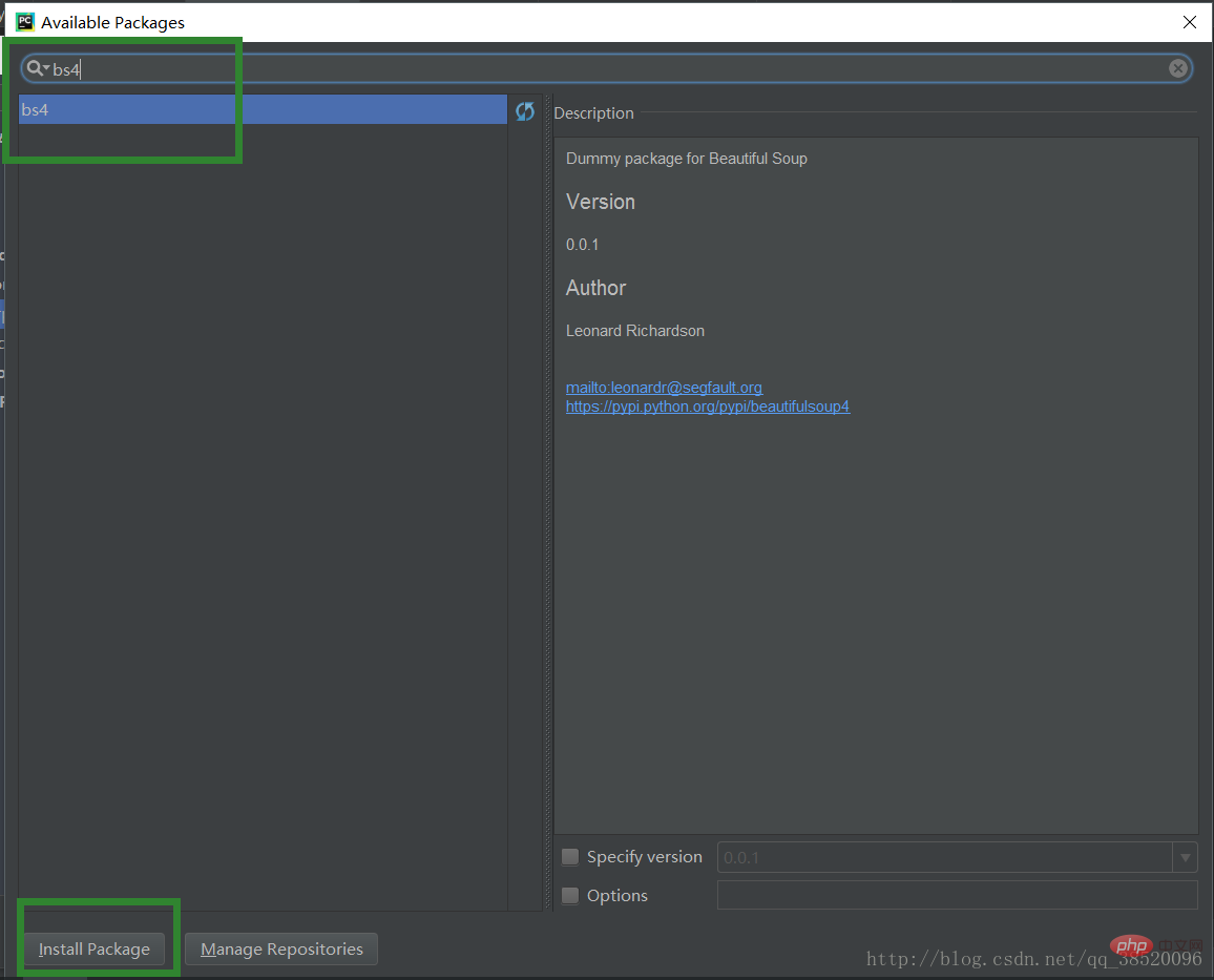我们需要准备一款名为BeautifulSoup(网页解析)的开源库,用于对下载的网页进行解析,我们是用的是PyCharm编译环境所以可以直接下载该开源库。