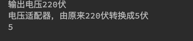 System.out.println("电压适配器,由原来"+output220V+"伏转换成"+adapter5V+"伏");