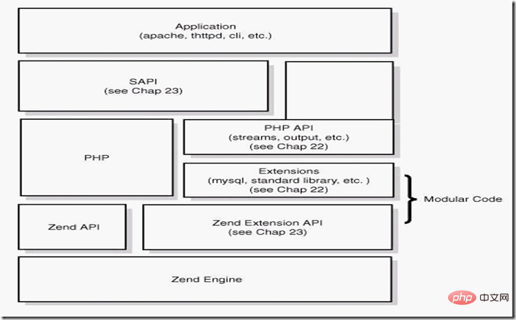 从图上可以看出,php从下到上是一个4层体系