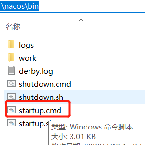 在下载的Nacos解压包解压到对应文件夹下,然后进入/nacos/bin文件夹下双击 startup.cmd 打开Nacos。