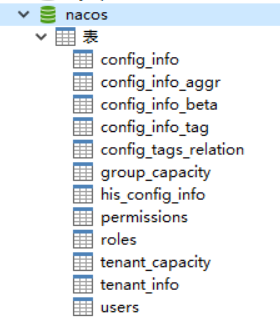 首先,我们需要在mysql中新建一个数据库去存储Nacos的配置文件,这里我们建的Nacos得数据库名字是nacos。Nacos有一套sql的建表语句存放在/nacos/conf文件夹下的nacos-mysql.sql下,把该sql文件下的建表语句在nacos的数据库中执行生成对应数据库表。