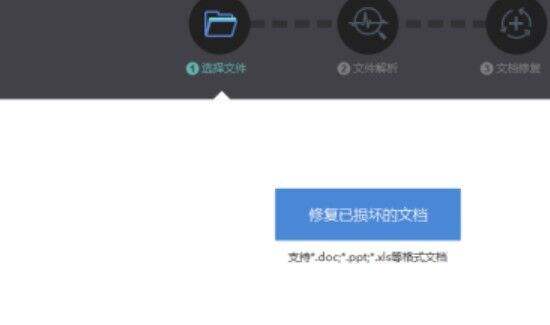 2、点击下拉列表应用中心的“文档修复”选项,之后选择需要修复的wps文档,或者是直接将需要修复的wps文档拖拽到制定区域内。