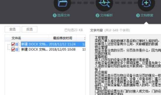 3、文件解析完成后,打开文档修复界面并选择修复版本,之后点击“确认”按钮,wps文档就会自动进入修复程序,修复完成后会被保存到指定位置。