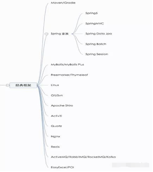 Java 企业级开发涉及到的技能点实际上非常多,我将其大致归为以下五类(文末可以获取思维导图):