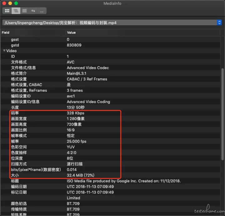 通过medinfo软件,可以查看一个视频文件的上述信息