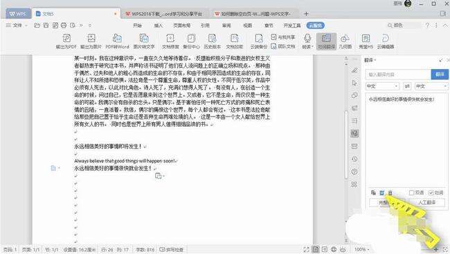 如果是整份文件翻译的话,会直接另开一个新的Word 文件显示翻译内容。